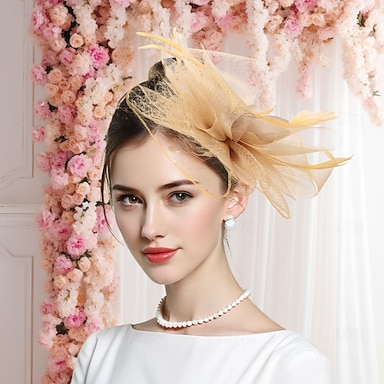 Couronnes Coiffe Tulle Mariage Anniversaire Course de Chevaux Élégant ancien Avec Plume Tulle Casque Couvre-chef