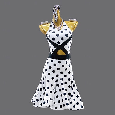 Robe de danse latine à pois pour femme, sans manches, vêtements de danse salsa rumba