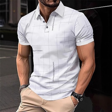 Homme Polo Polos à Boutons Occasionnel Sports Revers Manche Courte Mode Basique Plaid Boutons Été Printemps Noir Blanche Polo