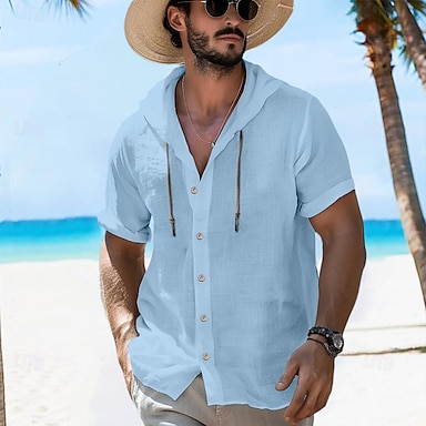 Homme Chemise Chemisette Chemise d'été Chemise de plage Chemise à capuche Plein Vacances Curise Noir Blanche Vert Bleu clair Manche Courte Capuche Eté Printemps Vêtement Tenue