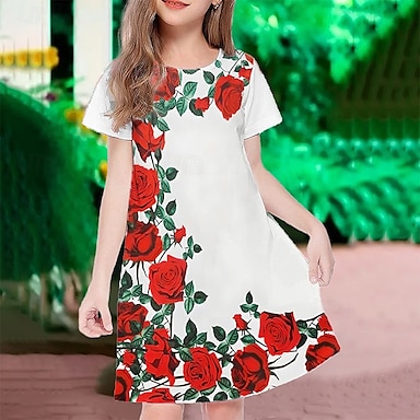 Pâques FILLE 3D Floral Graphic Robe Manche Courte Eté Printemps Vacances du quotidien Princesse Magnifique Doux Enfants 4-12 ans Robe casual Mi-long Standard