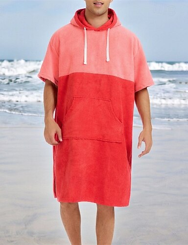 Homme Pyjamas Vêtements de Nuit Robe de bain Uni Mode Élégant Classique Maison Quotidien Lit Polyester Confort Doux Sweat à Capuche Manche Courte Été Printemps Rouge