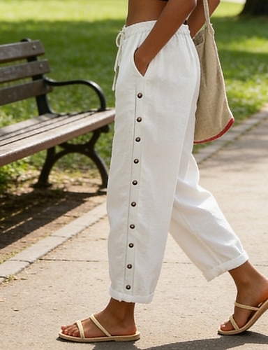 Femmes Coton Pantalons Pantalon d'été Pantalons de Plage Vacances Mode Décontracté Quotidien Longueur cheville Taille haute Uni Taille Élastique Bouton latéral Léger Confortable Respirant Non