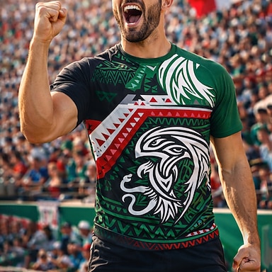 Maillot de football pour homme, inspiré du Mexique – T-shirt graphique vert, blanc et rouge pour supporters, en tissu mesh respirant à séchage rapide et protection UPF 50+ pour la saison des tournois