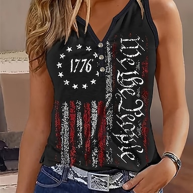 Débardeur patriotique pour femmes du Jour de l'indépendance graphique drapeau vintage élégant classique sans manches col rond tops réguliers impression quotidienne bleu rouge été printemps