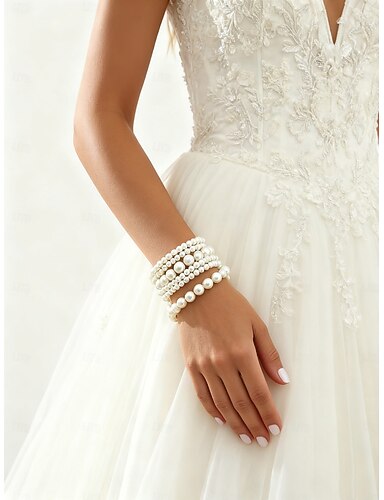 Bracelet de mariée élégant à plusieurs rangs de perles pour femme - accessoire de mariage en fausses perles pour la mariée et les demoiselles d'honneur&occasions formelles