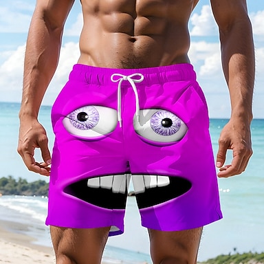 Homme Illusion d'optique Dessin Animé 3D Visage Souriant Maillots de bain Shorts de bain Shorts de Surf Taille Moyenne Hawaïen Drôle Vacances à la Plage Poches Latérales doublure en maille Taille