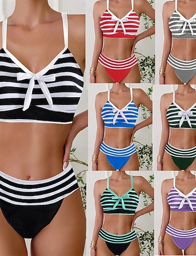 Femmes Maillots de Bain 2 pièces Coquin Maillot de bain Dos nu Vacances Tenues de plage Rayure Rayé Col en V Sans manches Maillots de bain