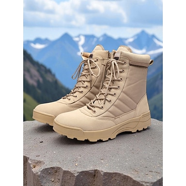 Chaussures de randonnée beiges légères pour femmes – baskets montantes respirantes en mesh avec semelle adhérente, idéales pour la randonnée, les sentiers et les voyages.