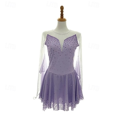 Robe de patinage artistique Femmes Patinage Robe Violet Claire Patchwork Ourlet asymétrique Élastique Entraînement Compétition Tenue de Patinage Classique cristal pailleté manche longue Patinage sur