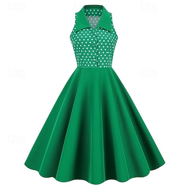 Élégant Années 1950 Inspiré vintage Mi-long Robe Robe Trapèze Robe de thé À pois Ligne A Déguisement Femmes Noël Carnaval Nouvel An Retour à la maison Tenue quotidienne Enterrement de Vie de Jeune