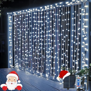 300leds lumières de rideau solaires en plein air guirlandes solaires intérieures en plein air étanche fée fenêtre lumières lumières scintillantes 8 modes décoration de noël pour la maison jardin patio