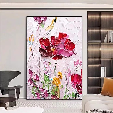 grande peinture à l'huile florale colorée peinte à la main sur toile grand art mural peinture abstraite 3D peinte à la main art floral décoration murale bohème peinture personnalisée pour décoration