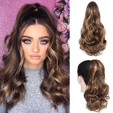 Extension queue de cheval à cordon de serrage 40 cm (16 pouces), cheveux ondulés et bouclés, extensions synthétiques pour un usage quotidien, 40 cm (16 pouces).