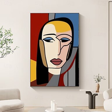 Portrait abstrait de femme peint à la main, tableau sur toile fait main, art mural abstrait, peinture de visage de femme minimaliste, peinture féminine vibrante, portrait de femme, décoration murale