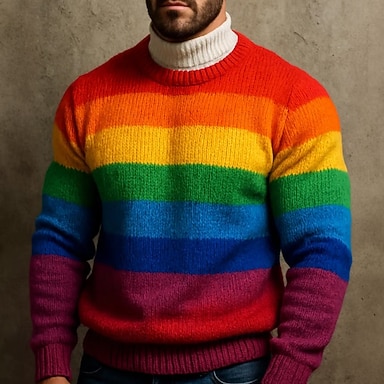 Homme Bloc de Couleur Bandes verticales Pull Tricots Col Rond Occasionnel Vacances Quotidien Impression 3D Garder au chaud manche longue Printemps Automne Hiver Multicolore un Multicolore B Multi