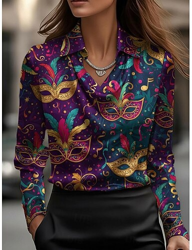 Carnaval Femmes Chemise Imprimé Drapé Graphique Élégant ancien Occasionnel manche longue Col Bénitier Hauts Réguliers Quotidien Travail Fête Violet Printemps Automne