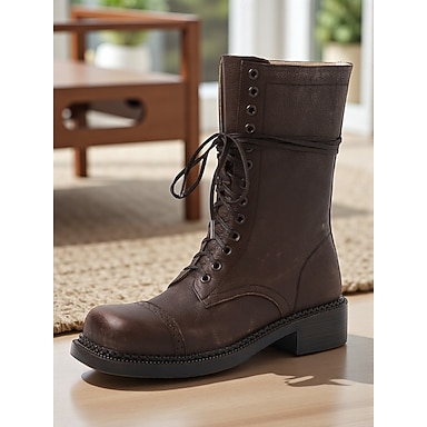 Bottines à lacets en cuir classiques Maillard de style britannique pour femmes - Bottines de combat rétro vintage pour une tenue décontractée d'automne et d'hiver