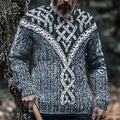 Homme Viking Pull Tricots Col Rond Rétro Vintage Occasionnel Vacances Quotidien Impression 3D Tricot Garder au chaud manche longue Printemps Automne Hiver Violet Bleu Marron