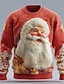 Pull de Noël moche Homme Père Noël Dessin Animé 3D Pull Tricots Col Rond Occasionnel Vacances Quotidien Impression 3D Garder au chaud manche longue Printemps Automne Hiver Rouge