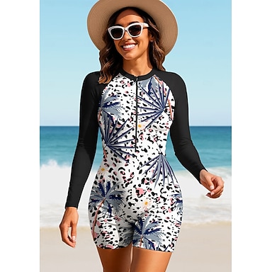 Femmes Maillot Anti UV Combinaison de surf une pièce Maillot de bain Fleuri Léopard Floral Zip Up avec soutien-gorge intégré Coussin amovible Protection Solaire UV UPF50+ Ultra Léger (UL) manche