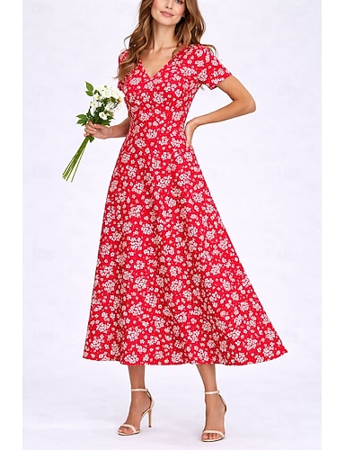 Femmes Robe Midi Robe bohème Robe d'Été Robe Décontractée Élégant Bohème Vacances Plage Fête Date Coupe régulière Fleuri Graphique Manche Courte Col en V Bleu Noir Rouge Été Printemps