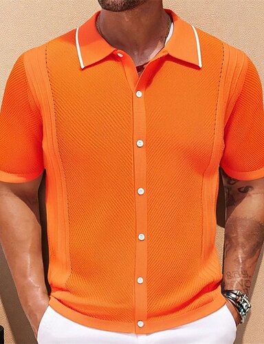 Homme Polos à Boutons Chemise de golf Occasionnel Sports Revers Manche Courte Mode Basique Uni Boutons Été Bleu Orange Gris Polos à Boutons