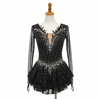 Robe de patinage artistique Femmes Patinage Robe Noir Patchwork Dos Nu Élastique Entraînement Compétition Tenue de Patinage Classique cristal pailleté manche longue Patinage sur glace Patinage