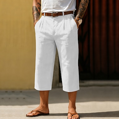 Homme Pantalons en Lin Pantalon capri Pantalon d'été Avec Poches Taille Élastique Uni Confort Respirant Longueur mollet Quotidien Extérieur Plage Vacances Mode Bleu Kaki foncé Micro-Élastique