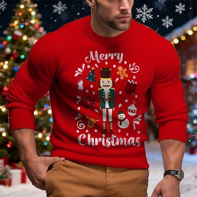 Pull de Noël moche Homme Chaque Pull Tricots Col Rond Occasionnel Vacances Quotidien Festival Impression 3D Garder au chaud manche longue Printemps Automne Hiver Noir Rouge Orange