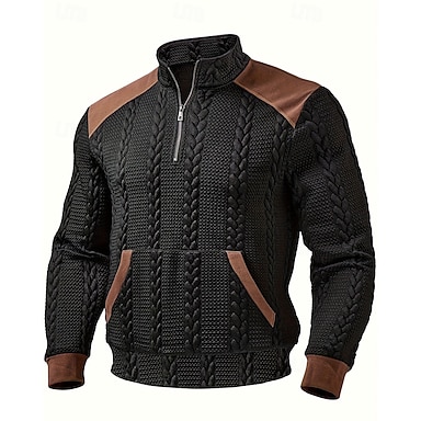 Homme Sweat-shirt Pull Sweat-shirt quart de fermeture éclair Noir Demi-zip Bloc de Couleur Jacquard Sport & Loisir Occasionnel Quotidien Streetwear Basique Occasionnel Automne Hiver Vêtement Tenue
