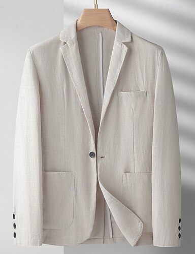 Homme Blazer en lin Manteau de sport Extérieur Occasionnel Occasionnel Printemps & Été Poly Coton Lin Couleur Unie Simple Boutonnage veste Blanche
