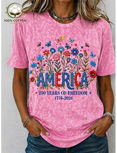Jour de l'Indépendance américaine t-shirt femme 100% coton impression graphique drapeau abstrait stylé basique classique à manches courtes col rond hauts réguliers décontractés quotidien bleu rose