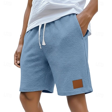 Homme Short gaufré Shorts d'été Shorts de plage Short décontracté Short texturé Cordon de serrage Taille Élastique Couleur Unie Confort Longueur Genou Quotidien Extérieur Vêtements de rue Vacances
