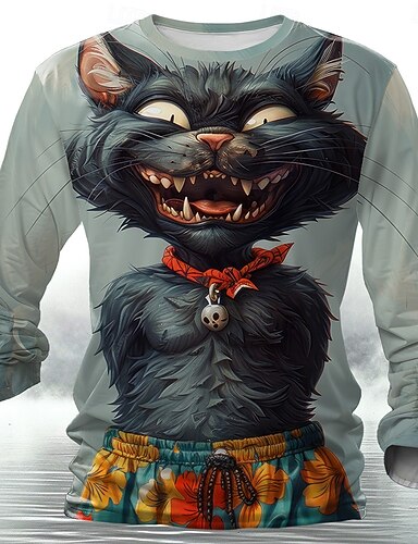 Homme Chat T-shirt manche longue T-shirt Impression 3D Col ras du cou Chemise Mode Exagéré Rue Quotidien Noir Été Printemps Automne Vêtement Tenue S M L XL XXL XXXL