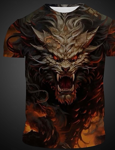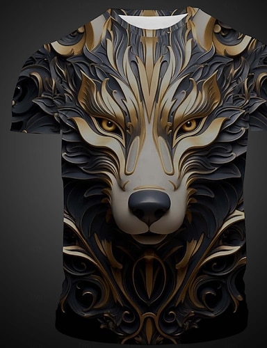 Garçon 3D Animal Loup T-shirt manche longue 3D effet Printemps Automne Actif Sportif Mode Enfants 3-12 ans Extérieur du quotidien Standard