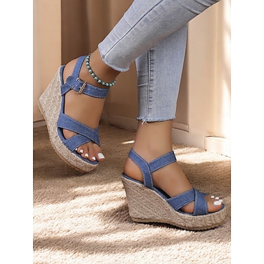 Sandales compensées en jean pour femme avec bride à la cheville – chaussures décontractées et élégantes pour le shopping, les dîners en plein air et les fêtes d'été
