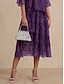 Ligne A Longueur thé Robes de Cocktail Robes pour invités de mariage Élégant Sans manches Col ras du cou Fête de jardin Formel Organza Jacquard avec Fleurs 3D Bloc de Couleur
