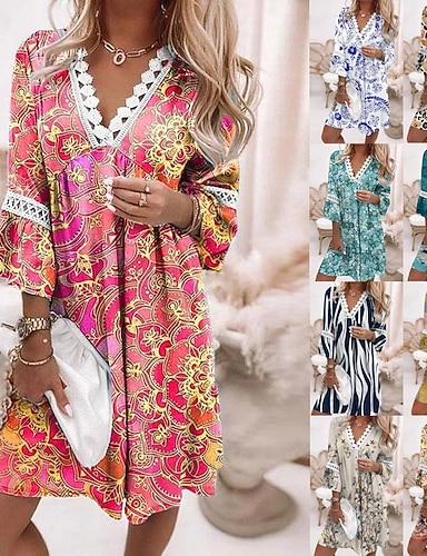 Femmes Mini Robe Robe Décontractée Robe d'été Mode Moderne Quotidien Vacances Week-end Coupe régulière Fleuri Graphique Dégradé de couleur Manche 3/4 Col en V Bleu Blanche Rose Claire Vin Été