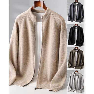 Cardigan en pure laine et cachemire de qualité supérieure pour homme, maille classique zippée, doux, chaud et respirant