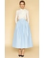 Ligne A Longueur thé Robes de Cocktail Élégant manche longue Col haut Formel Mariage Satin avec Noeud(s) Froncé