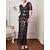 Robe maxi en sequins pour femmes Robe fourreau Robe trompette Sirène Élégante Fête Cocktail Épaules dénudées Fête de soirée Fête cocktail Florale Manches courtes Col en V Gris Été Printemps Automne