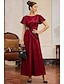 Ligne A Longueur thé Robes de Cocktail Robes de soirée Élégant Années 1950 Manche Courte Col en V robe demoiselle d honneur Retour à la maison Tissu Extensible Dos en V avec Plis
