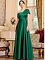 Ligne A Longueur au sol Longueur cheville Robe de Soirée Robe de Cocktail Manche Courte Épaules Dénudées Élégant Minimaliste Formel robe demoiselle d honneur Satin Robe de Mère de Mariée avec