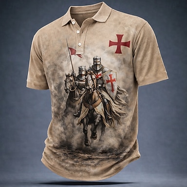 Homme Chevaliers Templiers Polo Manche Courte Polos Revers ancien Occasionnel Rue Athleisure Tenue quotidienne Impression 3D Boutons Maille Respirante Été Printemps Noir Marron Vert