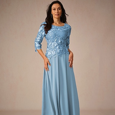 Robe fourreau longueur cheville A-ligne robe longueur thé en dentelle robe de bal robe de fête robe mère de la mariée longue manches col rond élégante vintage fête formelle dentelle avec dentelle