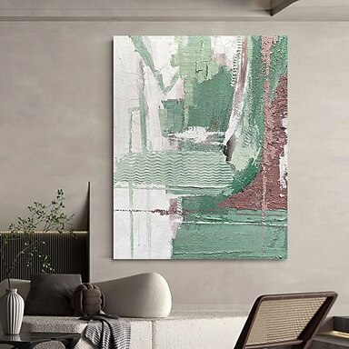 Peinture à l'huile sur toile, réalisée à la main, décor mural moderne abstrait vert, texture idéale pour le salon ou la chambre. Toile roulée, sans cadre et non tendue.