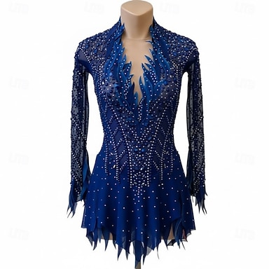 Robe de patinage artistique Femmes Patinage Robe Bleu marine Patchwork Dos Nu Élastique Entraînement Compétition Tenue de Patinage Classique cristal pailleté manche longue Patinage sur glace Patinage