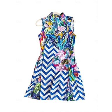 Femmes Robe de golf Bleu et blanc Sans manches Robe Vêtements de golf pour femmes, tenues, vêtements