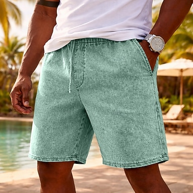 Homme Shorts Shorts d'été Short décontracté Short délavé à l'acide Avec Poches Taille Élastique Pur Couleur Pleine Lavé Confort Respirant Au dessus des genoux Occasionnel Extérieur Plage Vacances Mode